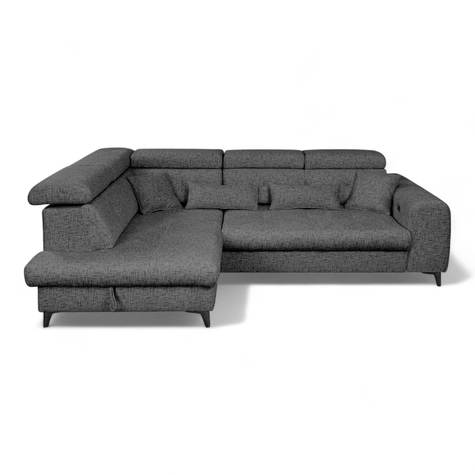 Hjørnesofa ELETRA Imo 55 kombinerer moderne design med avansert komfort og praktiske løsninger som gjør hverdagen enklere. Med en elektrisk, justerbar relaxfunksjon kan du lene deg tilbake og finne din perfekte posisjon med et knappetrykk. Sofaen er utstyrt med både induksjonslading og USB-uttak, slik at du kan lade mobilen eller nettbrettet direkte fra sofakroken – en løsning som gir maksimal bekvemmelighet i hverdagen.