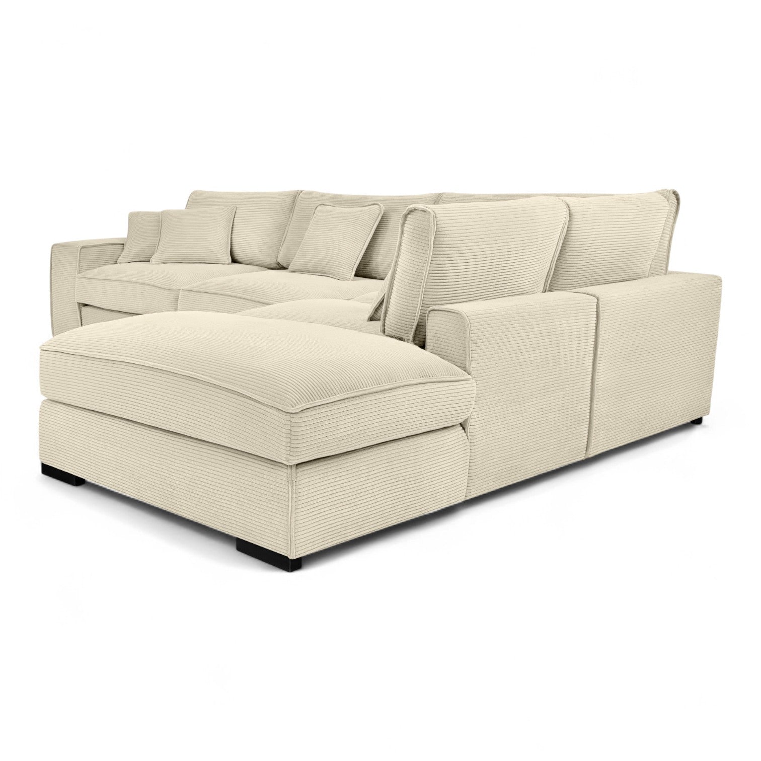 Lincoln hjørnesofa i lys beige corduroy er den perfekte kombinasjonen av stil og funksjonalitet. Med romslig sjeselong på høyre side får du god plass til å strekke ut beina og slappe av. Sofaen leveres med flere matchende puter som gir ekstra komfort og støtte. Det myke corduroy-stoffet er behagelig å sitte i og enkelt å vedlikeholde, samtidig som det gir stuen et moderne og innbydende uttrykk. Den dype sittekomforten og solide konstruksjonen gjør Lincoln til et naturlig samlingspunkt i hjemmet - perfekt for både hverdagskos og sosiale stunder.