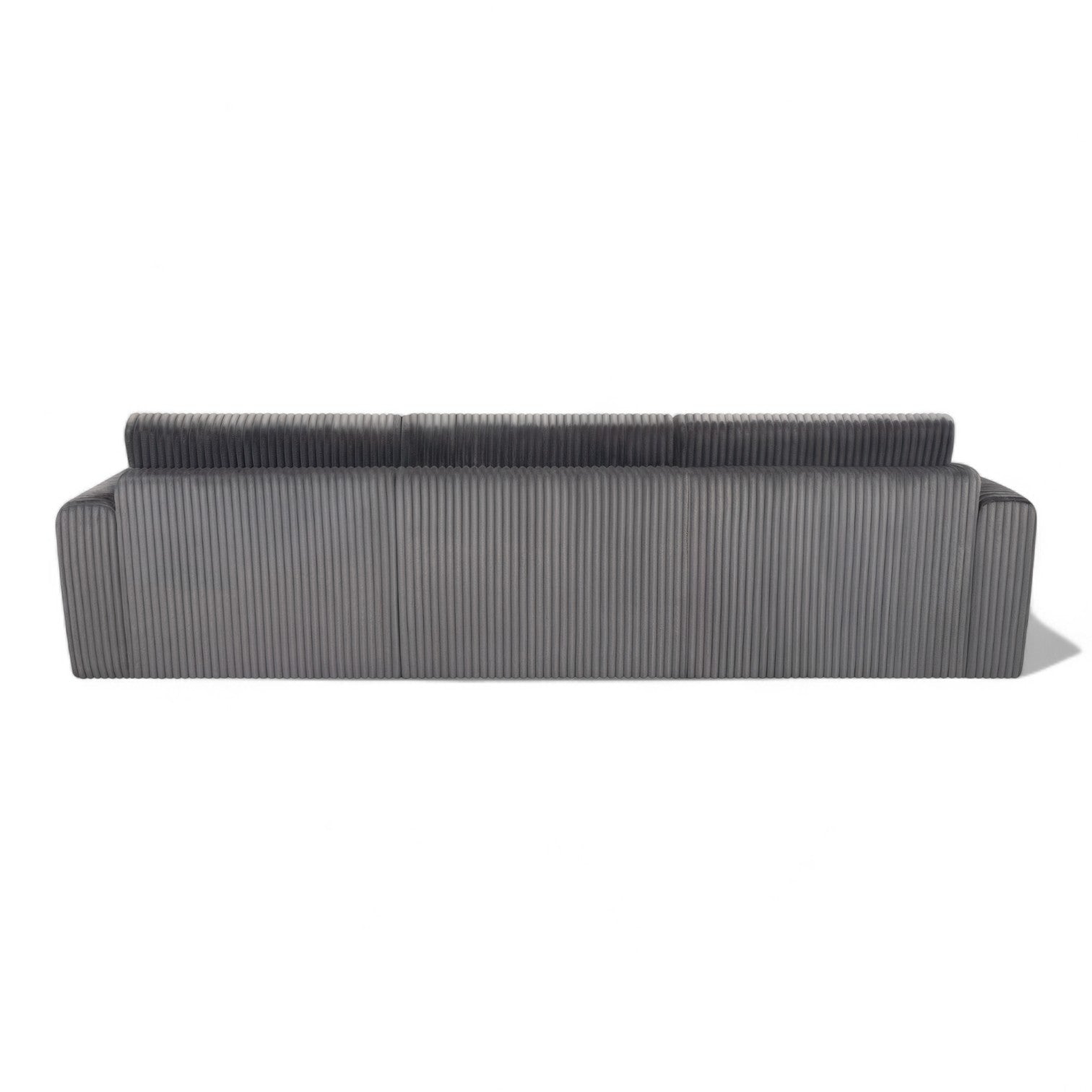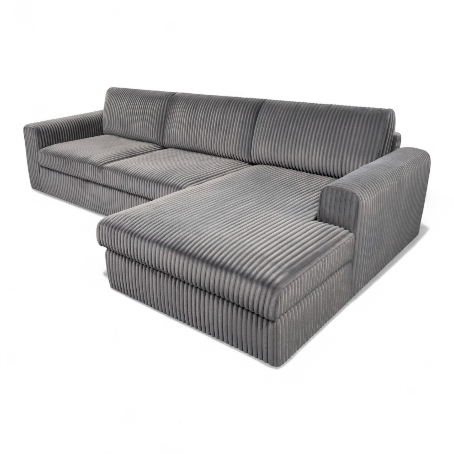 Premium Vello 30 strikk - bygget for livet: Pier er trukket i det robuste Vello 30 strikkestoffet som imponerer med sin unike søylestruktur og eksepsjonelle holdbarhet. Dette varpstrikkede materialet med karakteristiske brede striper tilpasser seg perfekt til møblets form takket være sin naturlige elastisitet. Det myke fiberdekselet kombinerer luksuriøs følelse med praktisk funksjonalitet - perfekt for familier som lever livet fullt ut.