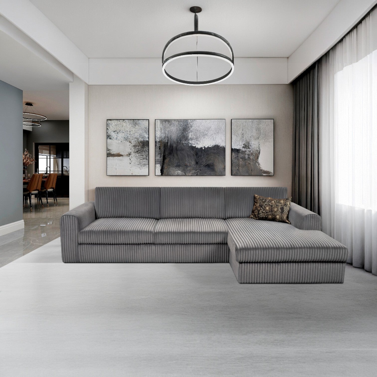 Opplev den ultimate kombinasjonen av stil og funksjonalitet med PERLA hjørnesofa - et møbel som transformerer stuen din til et luksuriøst familiested. Med sine imponerende dimensjoner på 300×170 cm passer den perfekt inn i romslige stuer og skaper det ideelle samlingspunktet for familie og venner.