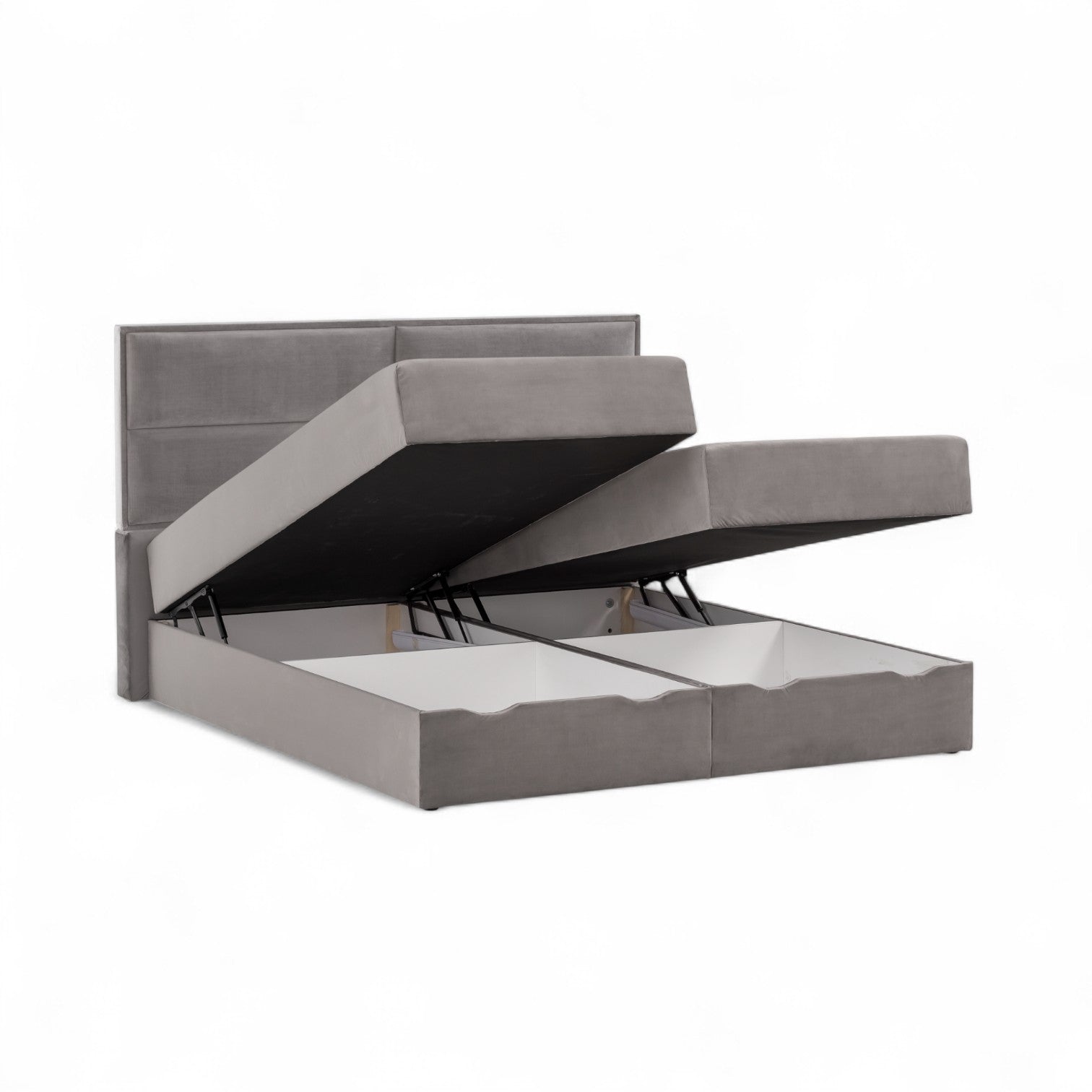 Viktoria har også integrert oppbevaring under madrassene – perfekt for sengetøy, puter og tepper. Oppbevaringen åpnes enkelt fra fotenden ved hjelp av et praktisk gassløftsystem som gjør det lett å løfte madrassen. Bunnen har ventilasjonshull for god luftsirkulasjon slik at innholdet holder seg fresht.