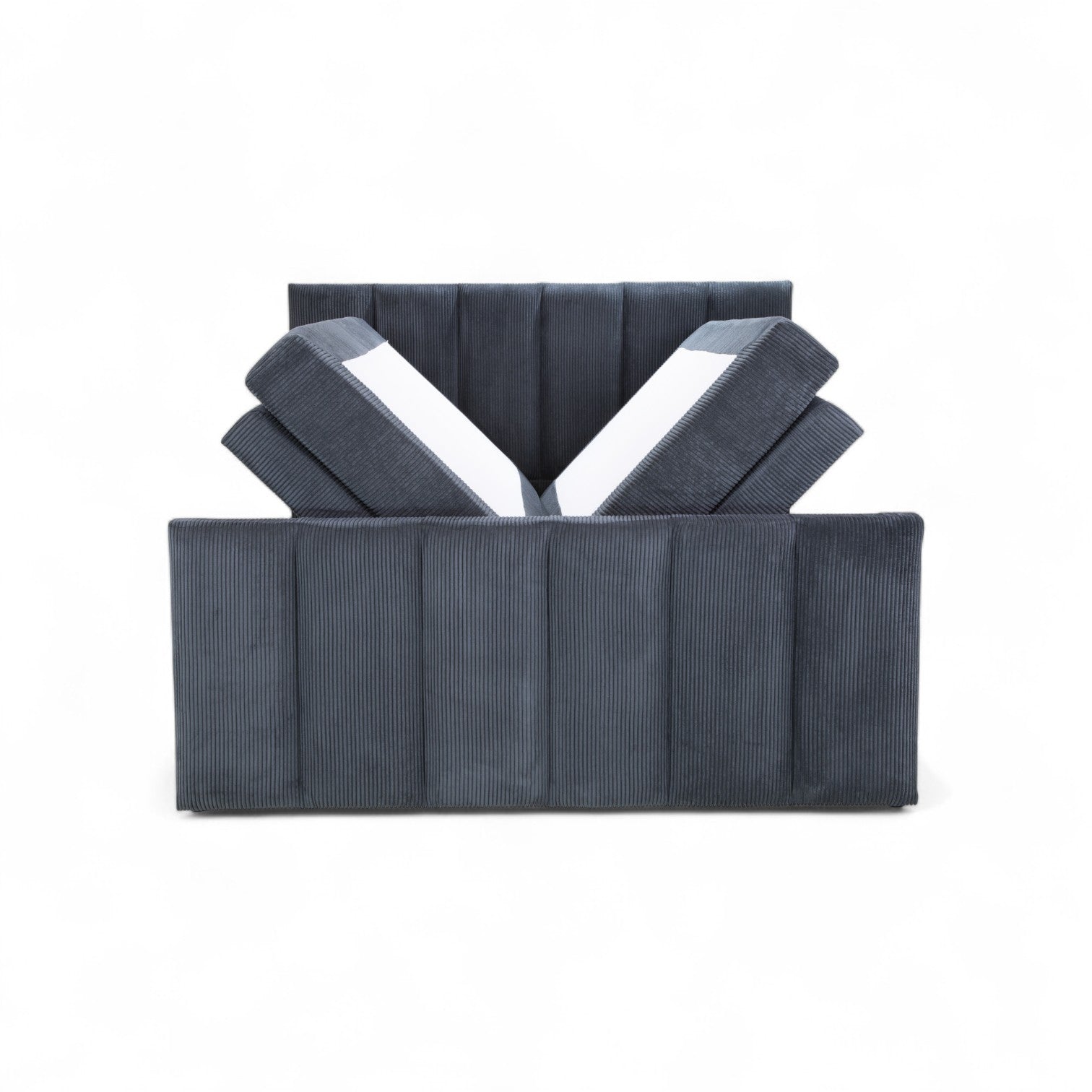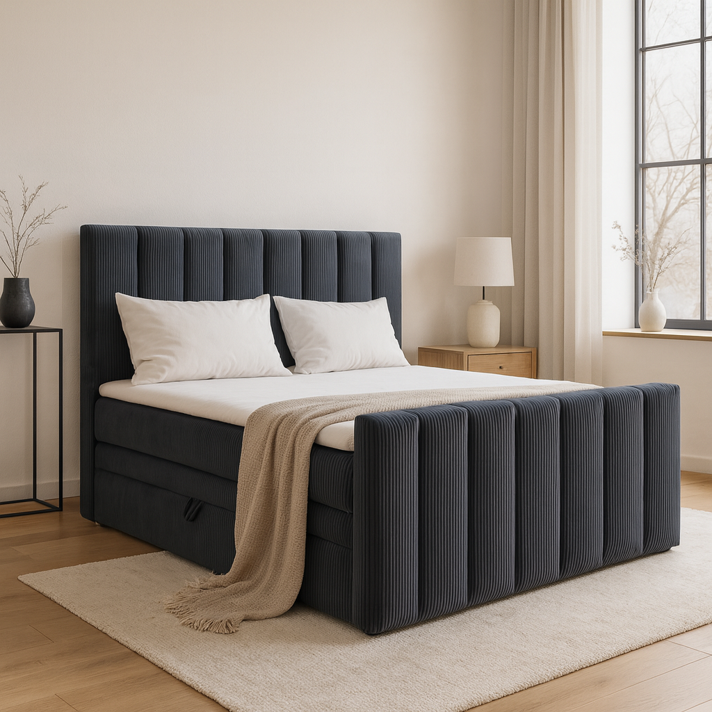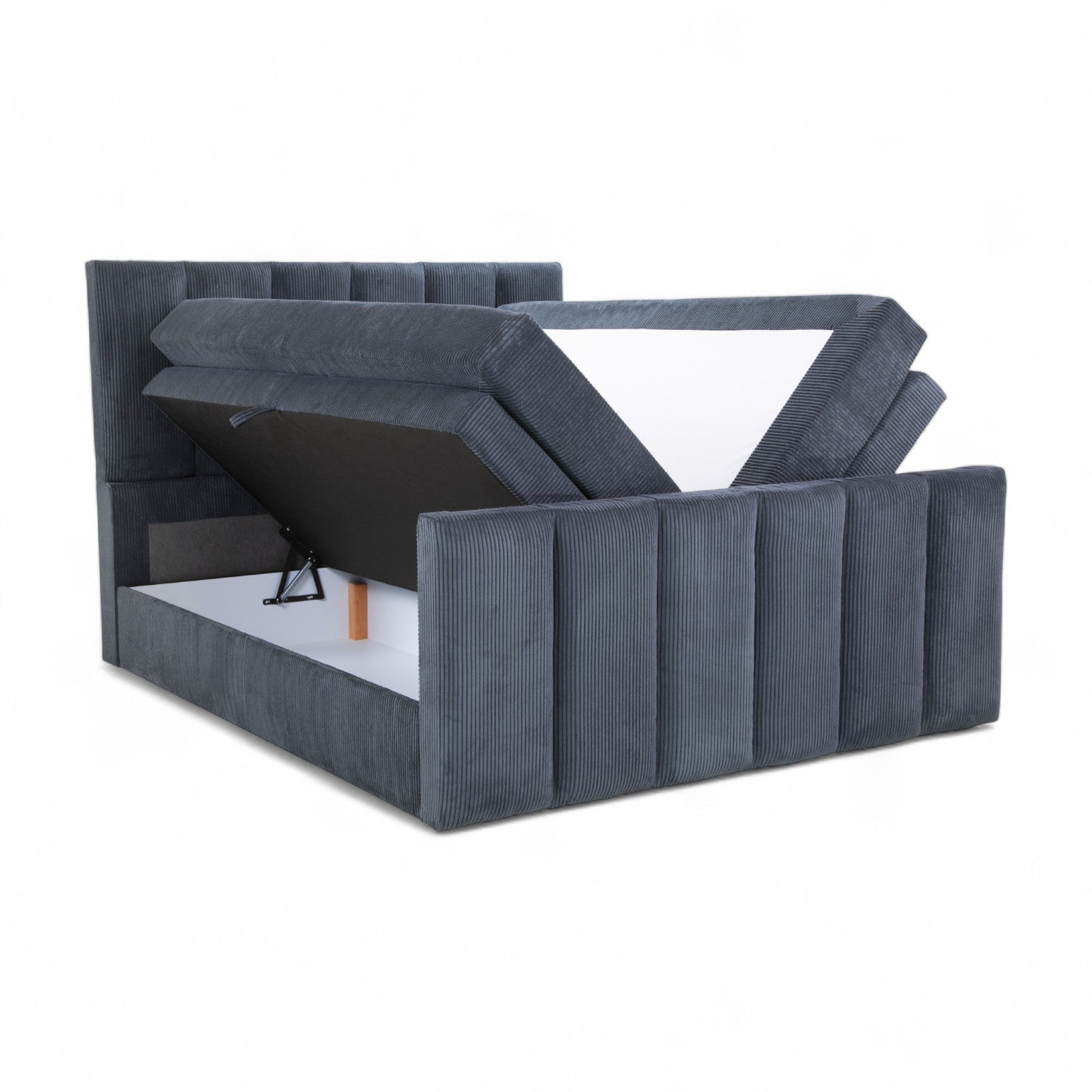 Smart oppbevaring med to romslige sengebeholdere under madrassen – perfekt for ekstra sengetøy, puter eller sesongklær. Den lydløse åpningsmekanismen med gassdempere gjør det enkelt å få tilgang til oppbevaringsplassen.
