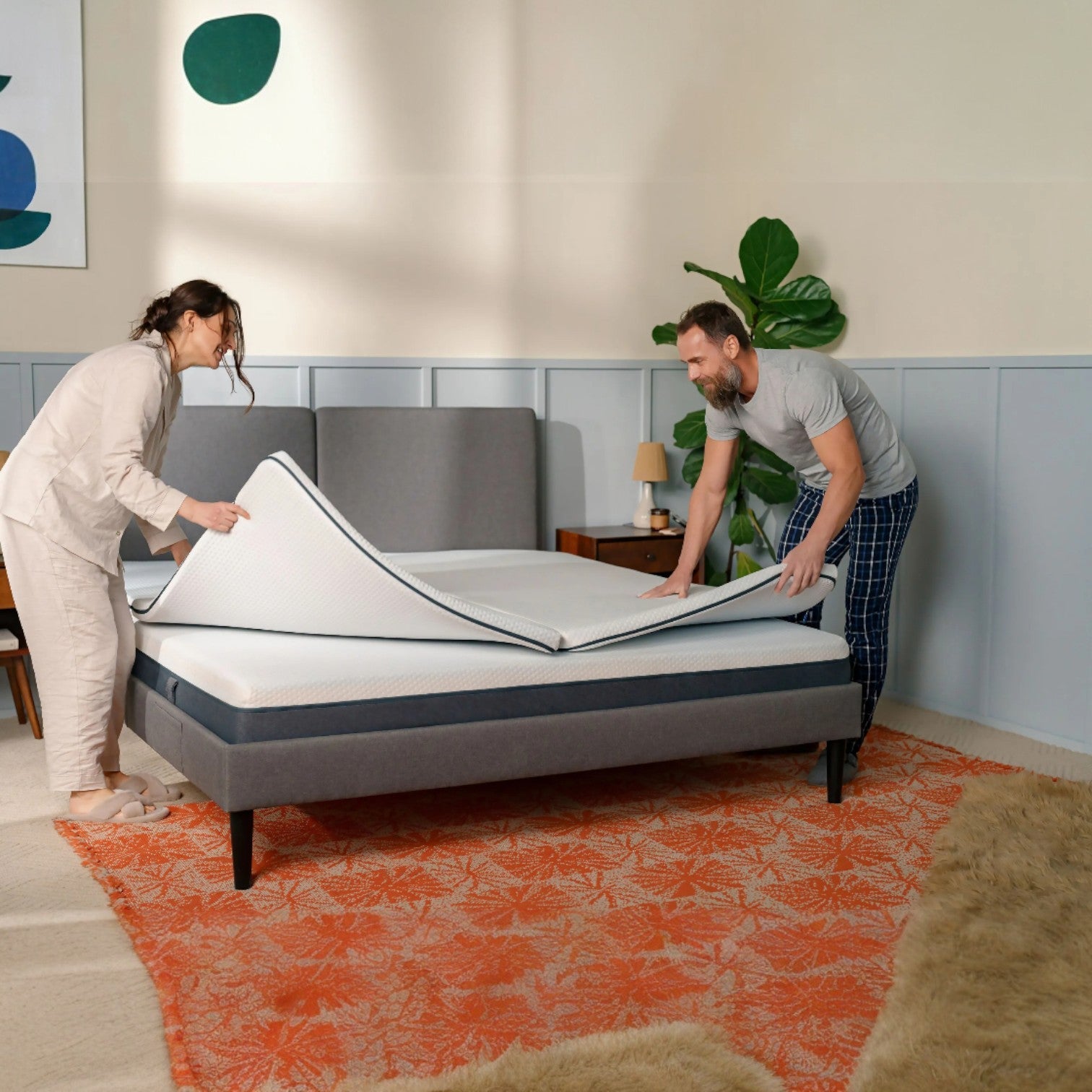 Overmadrassen er vendbar med en myk og en medium side, slik at du kan velge den komforten som passer best for deg.