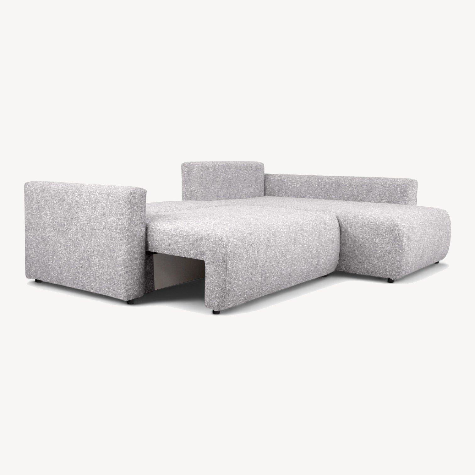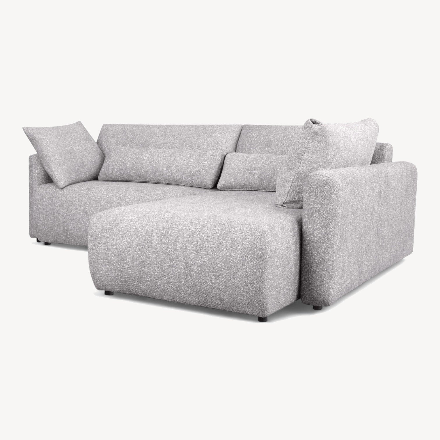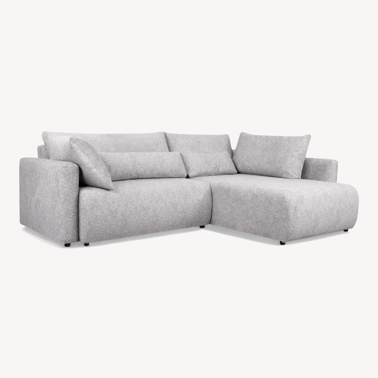 Sovesofa med sjeselong MALWINA i tekstil lys grå er et praktisk og plassbesparende valg som gir deg mye funksjon på liten flate. Sofaen kan speilvendes.