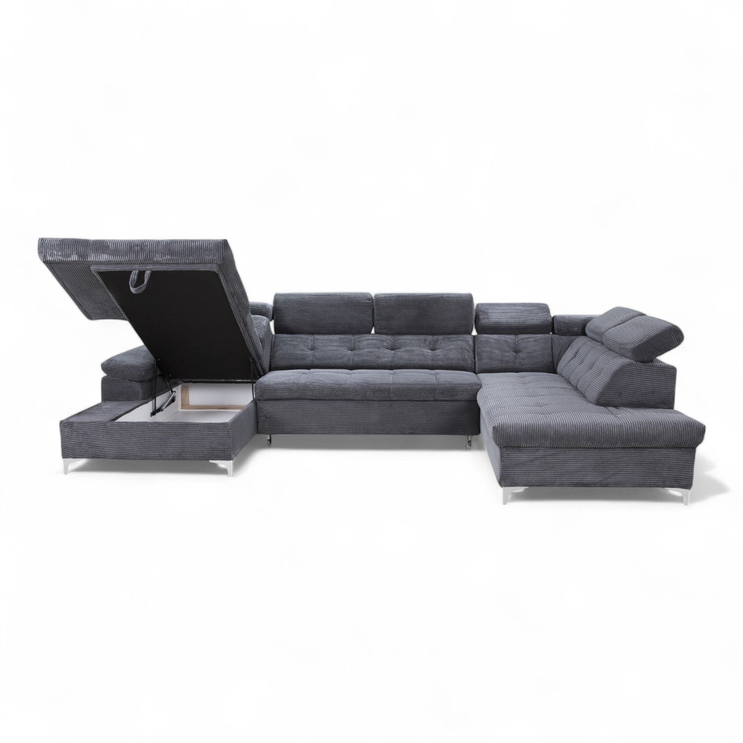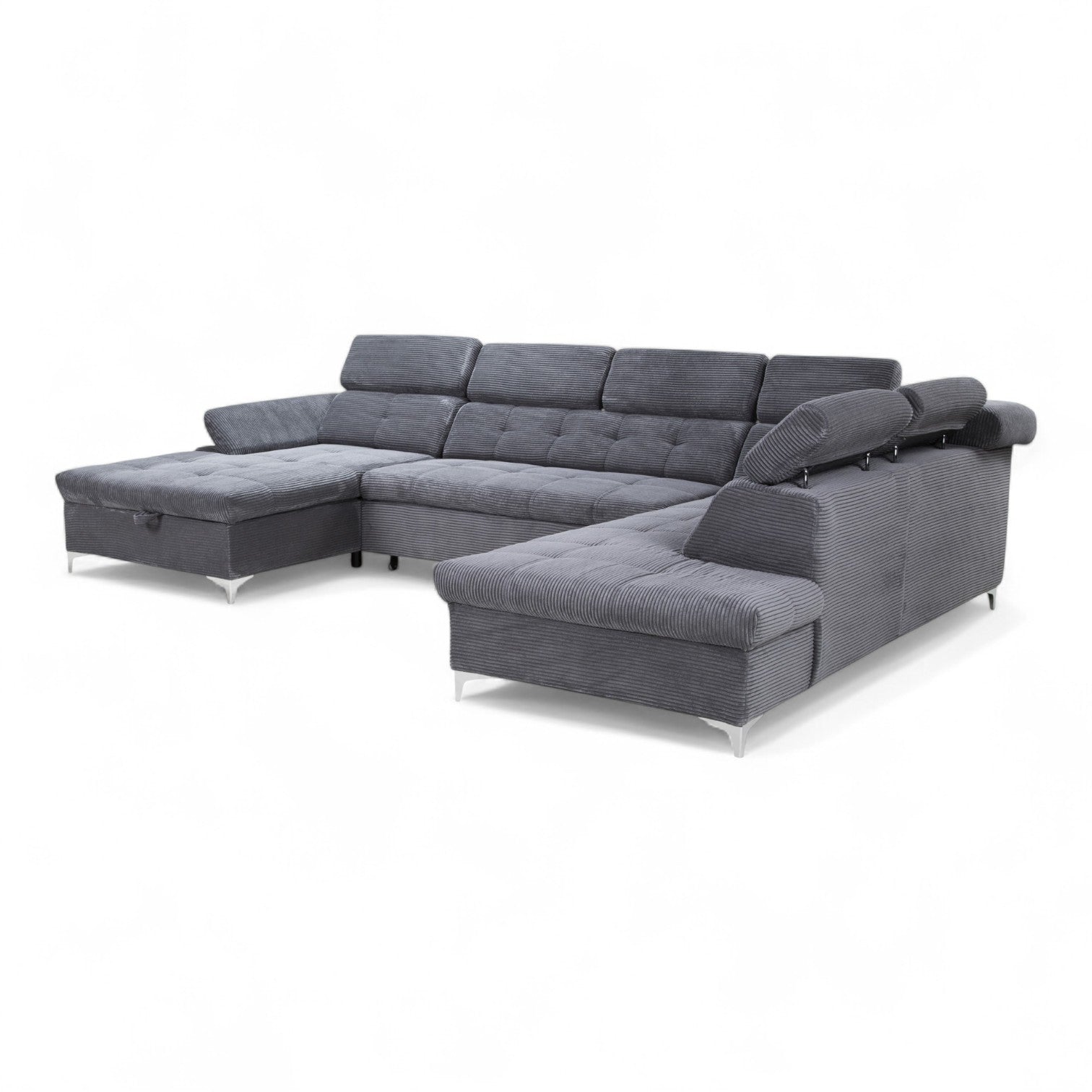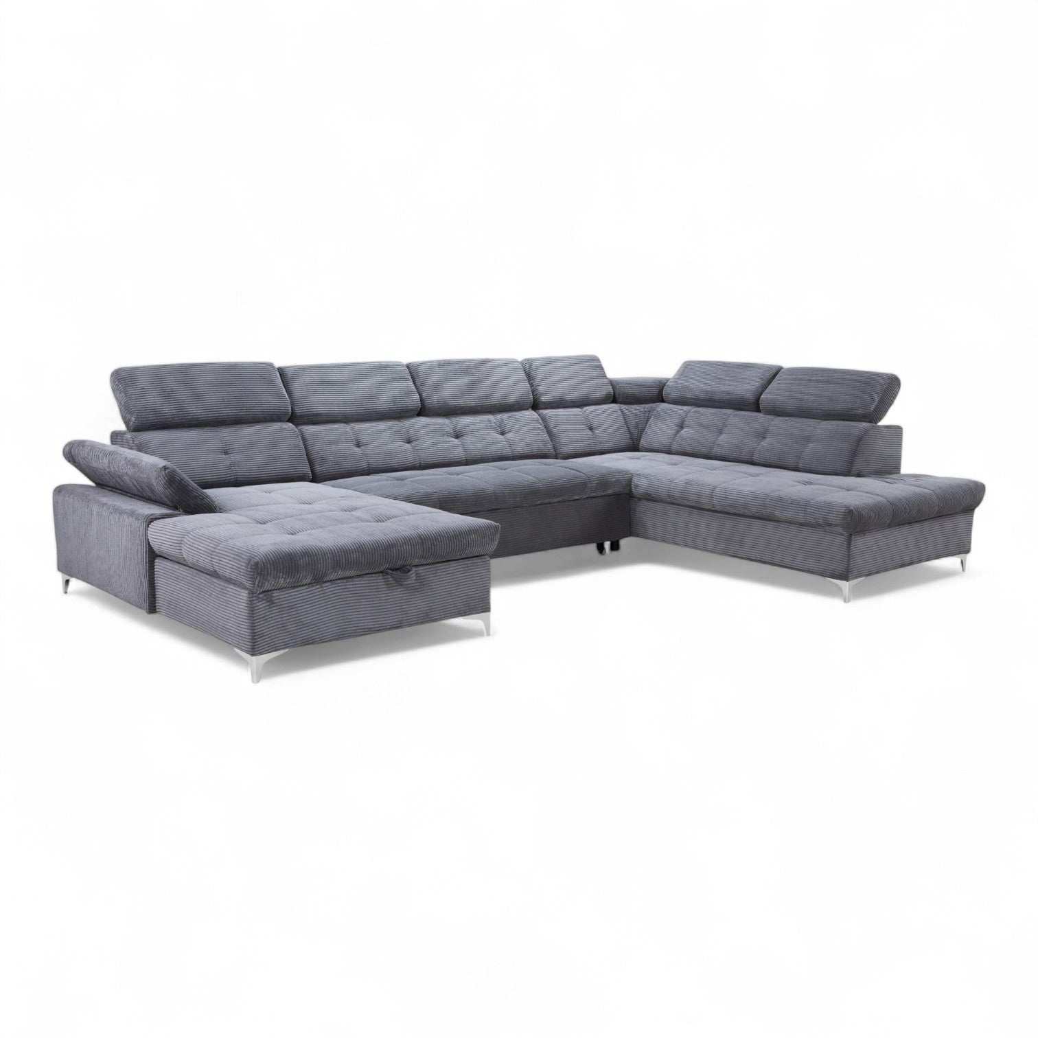 Satira er en moderne U-formet sofa som kombinerer stilfullt design med maksimal komfort. Med generøse mål på bredde ca. 337 cm og dybde ca. 176 cm får du rikelig med plass til familie, venner eller avslappende stunder alene. Den lave, dype sitteflaten skaper en behagelig loungefølelse, perfekt for koselige kvelder, film eller lange samtaler. Sjeselongen er høyrevendt, noe som gir et praktisk oppsett i rommet.
