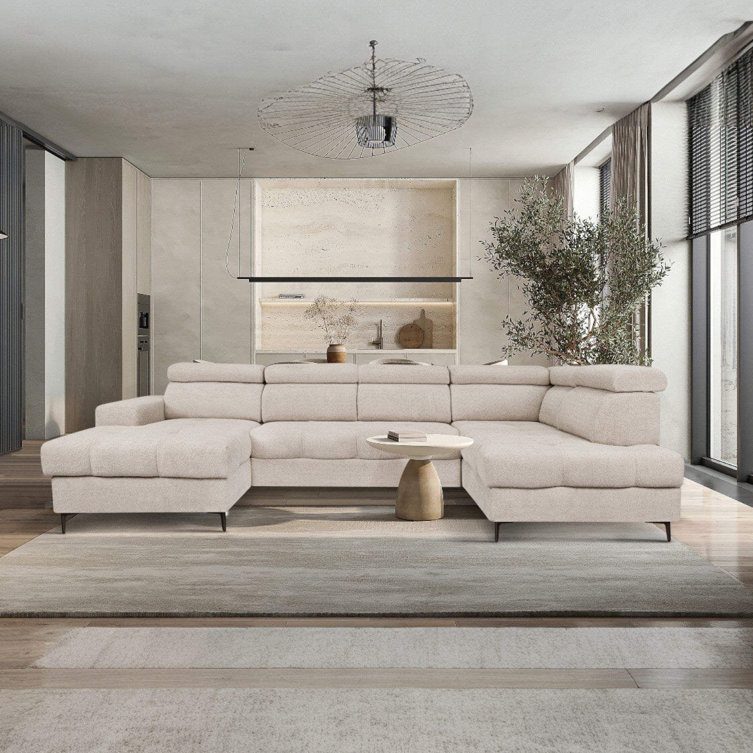 ASTI U-sofa kombinerer moderne design med praktisk funksjonalitet. Den store U-formen gir rikelig med sitteplass for hele familien og venner.