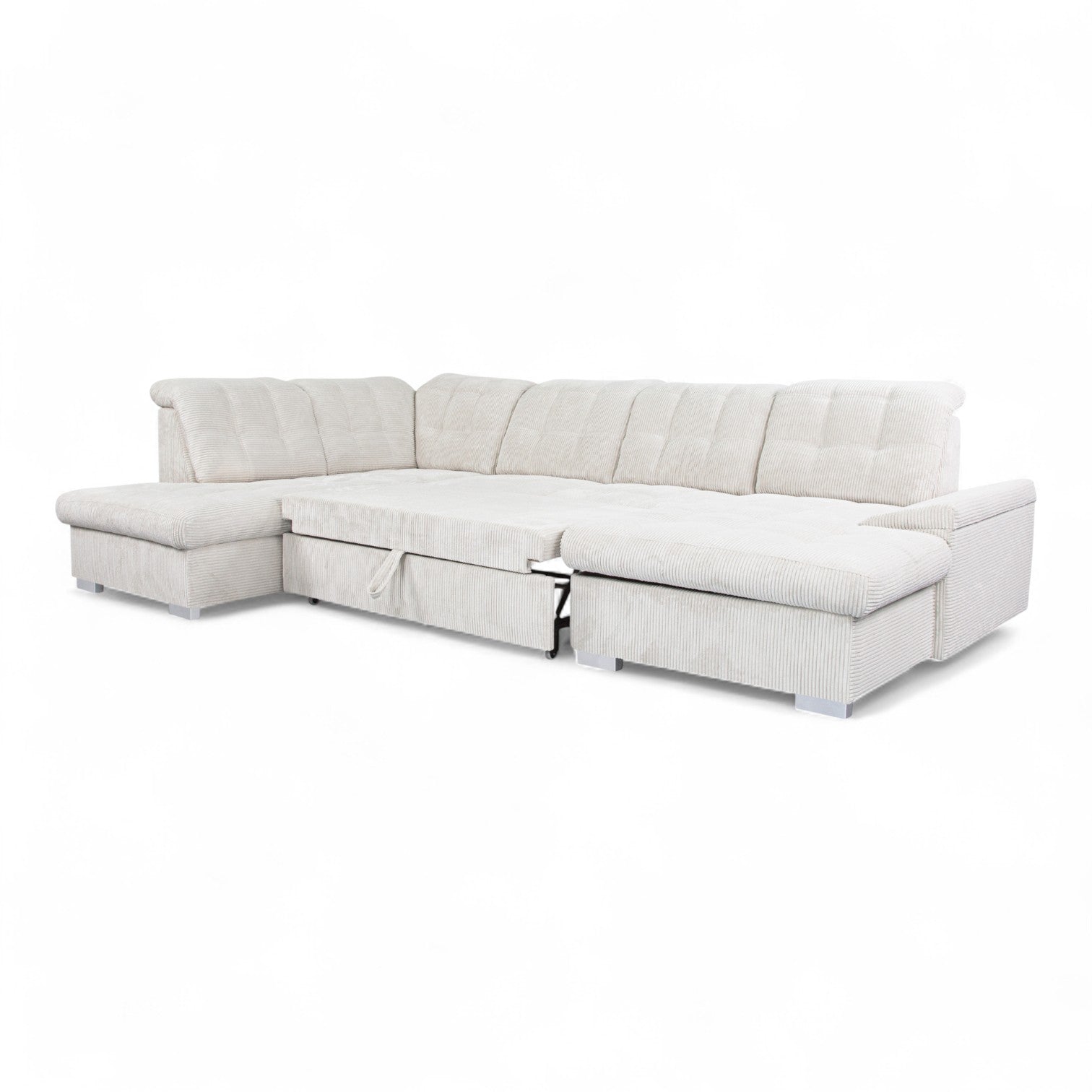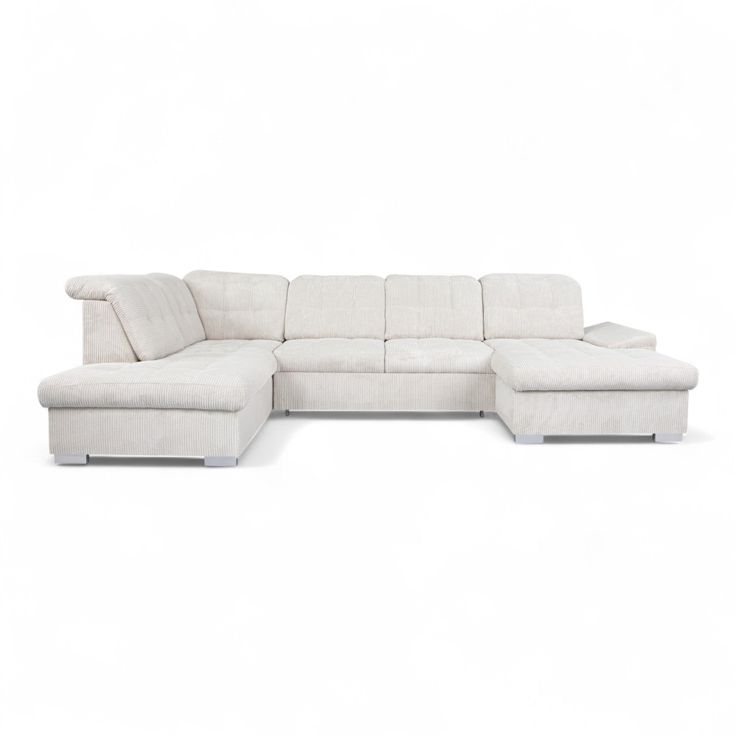 Nebraska Poso 100 er en romslig U-formet sovesofa som kombinerer moderne design med praktiske løsninger – perfekt for deg som ønsker både stil og funksjonalitet i stuen. Den lyse beige fargen gir et tidløst og innbydende uttrykk som passer like godt i nordiske som moderne interiører. Sofaen er venstrevendt.